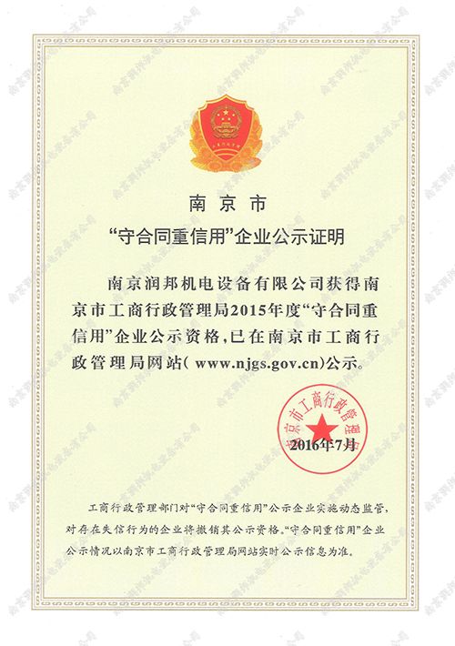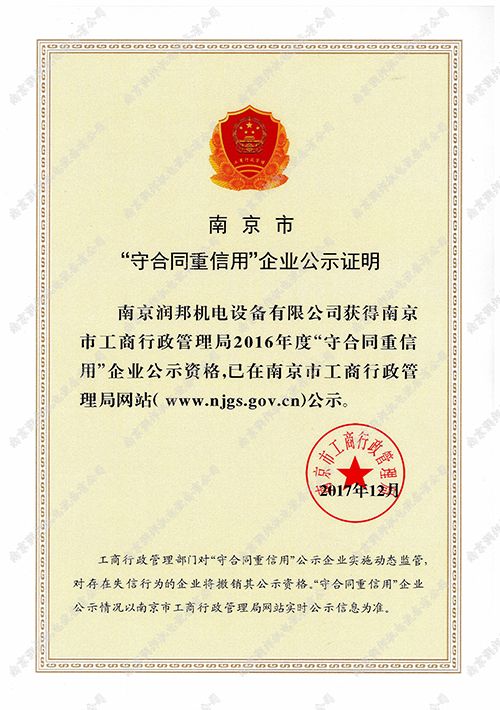 2016年市級守合同重信用企業(yè)